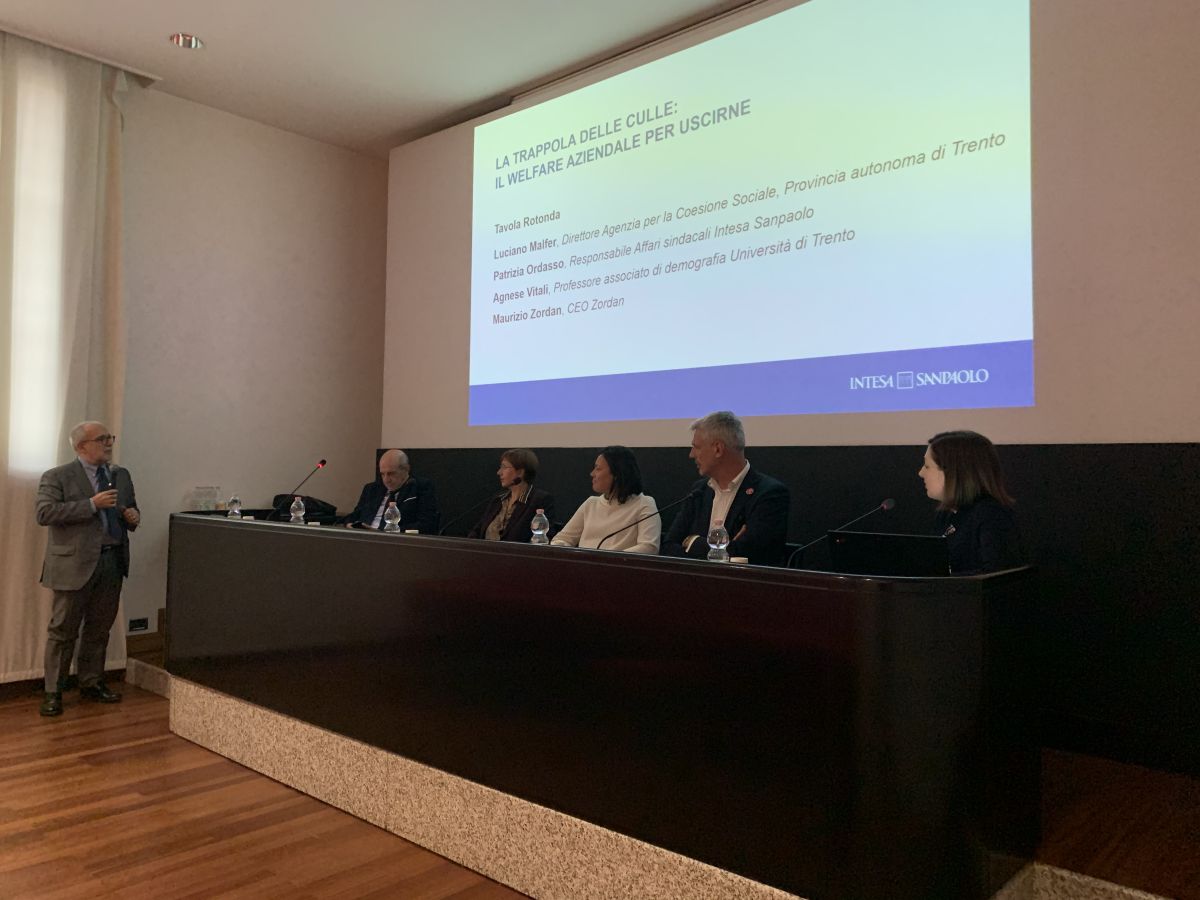 “I segni c’erano – interviene a rinforzo la demografa di Trento Agnese Vitali – e la situazione si poteva prevedere, ora finalmente se ne inizia a parlare”. Vitali illustra la “previsione inquietante” proposta da Istat un mese fa sul futuro della popolazione, con più anziani e famiglie più piccole, ma nota poi che “c’è margine per le politiche pubbliche per intervenire”. E cita il caso virtuoso delle province autonome di Trento e Bolzano, “uniche due a fecondità non bassa”, dove addirittura la media di figli nati per donna ha superato il dato di Svezia e Danimarca. Com’è stato possibile? I motivi sono molteplici, Vitali ne menziona tre: l’occupazione femminile più alta, la copertura di servizi per la prima infanzia estesa più che altrove, un mix di politiche pubbliche che funziona, dall’assegno unico universale che “esiste da molto tempo” ai congedi facoltativi per padri. Malfer, esperto di politiche famigliari tra i più accreditati in Europa, conosce bene la realtà trentina e sintetizza: “Oggi in Trentino il 40% della popolazione dipendente lavora in aziende che hanno adottato piani per la conciliazione del tempo vita-lavoro. I benefici si vedono dentro l’azienda” ma non solo perchè se “aumenta occupazione femminile, aumenta la natalità”, il che si traduce anche in un “fattore di competitività” per le imprese. Concorda Zordan, che rilancia: “Le aziende devono entrare in migliore connessione con il paese. Se queste si mettono in sintonia con la cultura del territorio, le persone non le rifiuteranno certamentè.